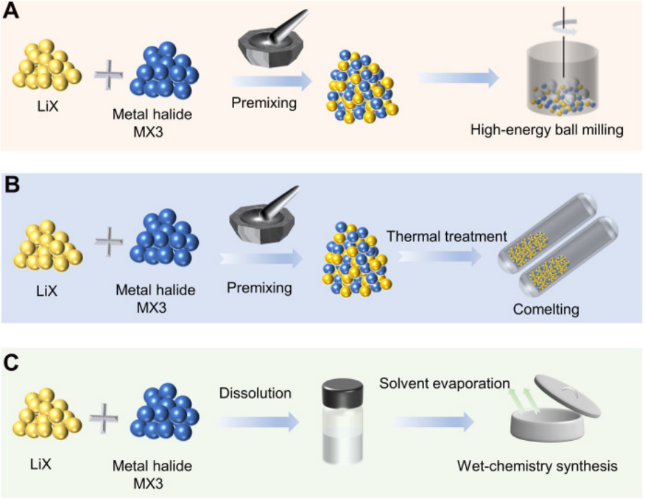 目前,當前鹵化物固態電解質的合成主要采用機械混合球磨和高溫燒結路徑,采用其他的合成方法,如液相合成、氣相沉積等,報道的相對較少。